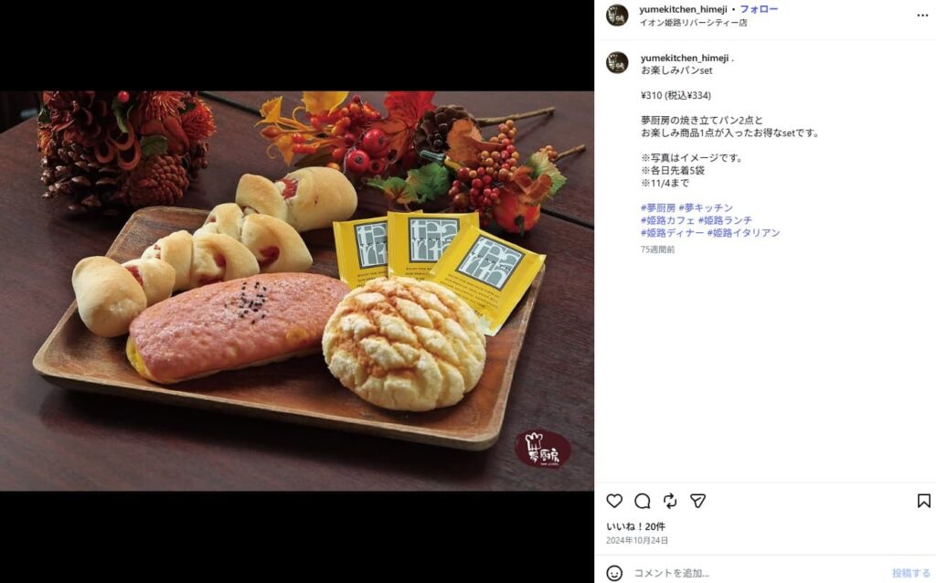 2店舗目のパン食べ放題店は姫路市にある「夢厨房 イオンモール姫路リバーシティ店」です。