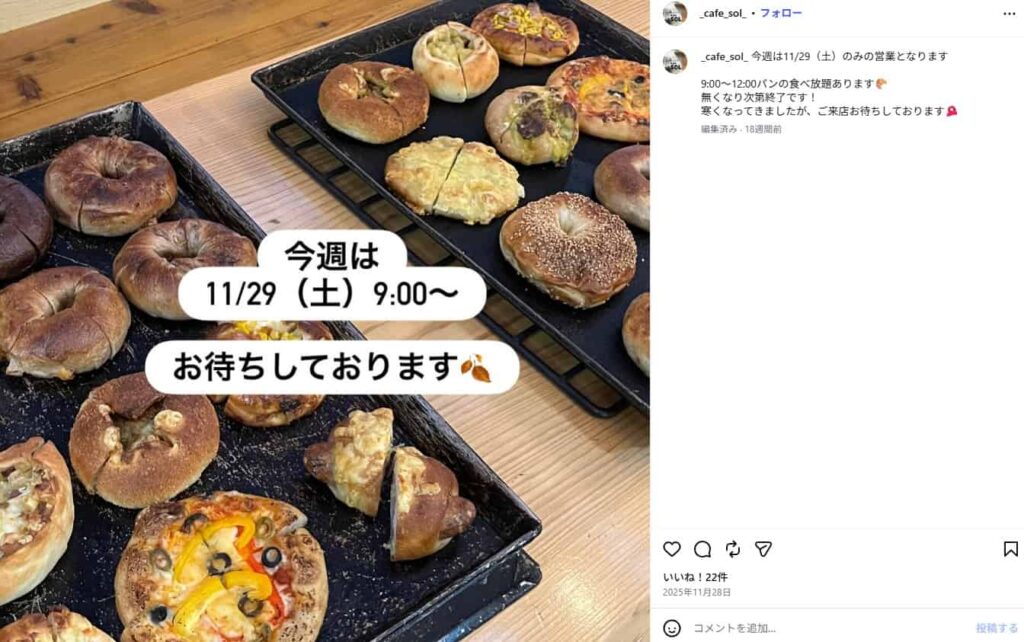 公式InstagramのDMなどで営業日を確認し、予約をしてから伺うのが確実です。臨時休業などの情報もSNSで発信されています。