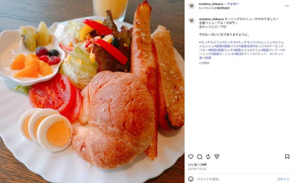 5店舗目のパン食べ放題店は姫路市にある「モッチモカフェ 姫路飾磨店」です。