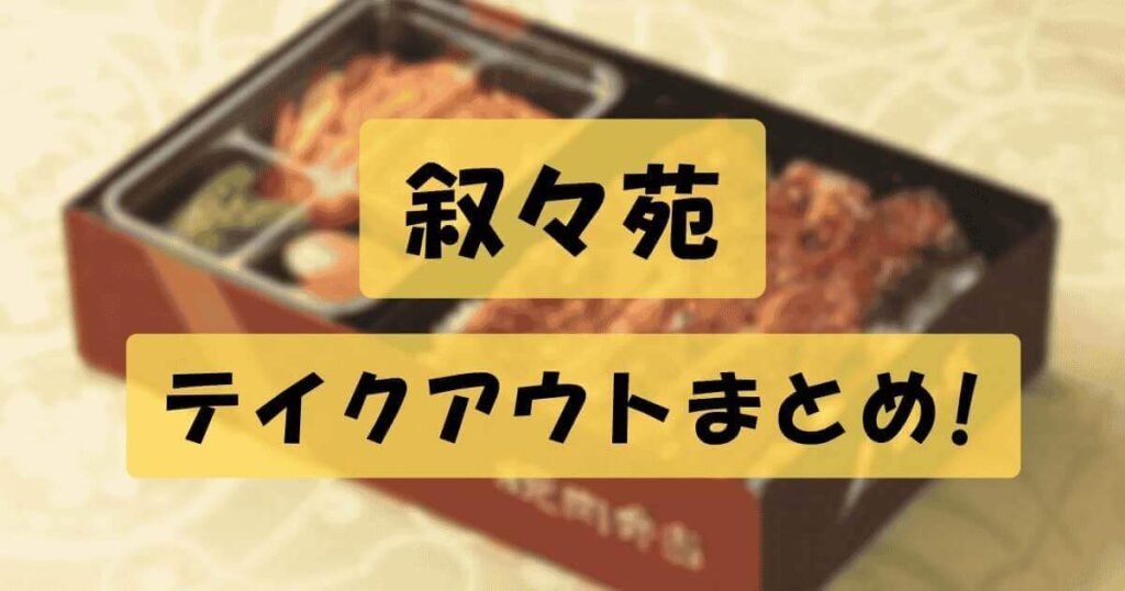 2026年の叙々苑のお持ち帰り(テイクアウト)メニューをまとめています。 叙々苑では電話や店頭からお手軽にお持ち帰り(テイクアウト)注文ができるんです。 どんなメニューがあるのか、予約方法とかも知りたいなぁ。 そこで今回は叙々苑のお持ち帰り(テイク... -