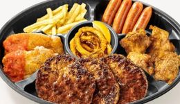 となっていて、お子様にも大人気なポテトフライ、ハンバーグや唐揚げなどどの年代にも喜ばれるメニューが入っています。