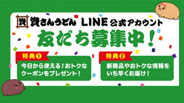 資さんうどんのお持ち帰り(テイクアウト)では資さんうどん公式アプリや公式LINEでクーポンが配信されています。